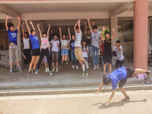 清晨6时许,天蒙蒙亮,队员们就纷纷起床进行最后一次排舞,为的是在闭幕式上满足学生们一直以来想看老师跳舞的愿望。多云的气象半掩着初升的太阳,弥漫的雾气也还没完全散去,离别的伤感似乎也在这样的早晨中逐渐酝酿。