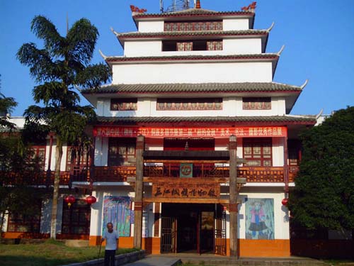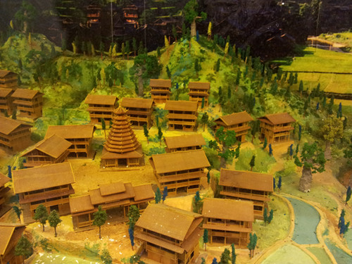 大约20分钟的步行后,队员来到目的地三江侗族博物馆。三江侗族博物馆是侗族文化研究、展示中心,全面展示了古老侗寨模型、侗族古朴习俗、侗族服饰、织锦和刺绣、侗乡文艺等文化遗产,具有相当大的价值。当地文化局局长亲自为队员们做讲解,并解释博物馆鼓楼实体物较少的原因,他指出两点缘由,一是县城博物馆的需要,把大多数纯物质遗产,包括鼓楼和风雨桥等雕版从该博物馆移位到县城博物馆。其次是,博物馆的建设需要资金,目前该该博物馆的经费不充裕,即使是有足够经费,很多文化遗产也是用金钱买不来的。队员在听完讲解,并进行观赏之后,对具有特色的侗族文化遗产发出了声声赞叹,感受到了侗族民族文化的独特魅力。