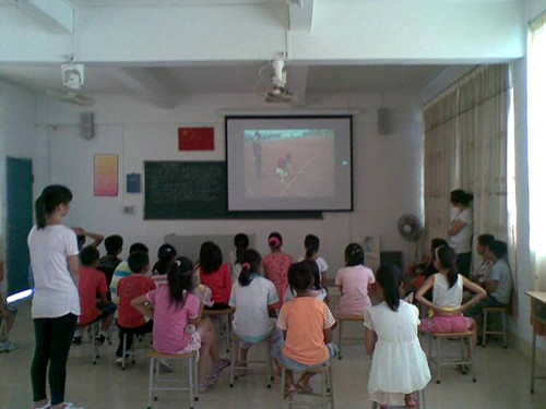 好不容易将兴奋的孩子们安定下来,我们便开始播放视频。孩子们端正的坐着,一双双小眼睛都睁得大大的,聚精会神地看着屏幕。看着孩子们那一双双睁大的眼睛,我内心深处的一个小角落被触动了。那是怎样的一种眼神?充满好奇和渴望,洋溢着天真和烂漫,让人不能不为之动情。