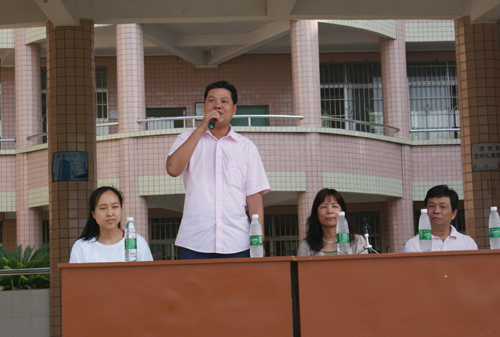 在开幕式开始之际,大湾中学副校长赖金水发表了讲话,表示了对这次暑期实践活动的期待以及对下乡服务志愿者的欢迎和感谢。赖金水副校长说:“我们的各项教学设备以及硬件设施都很不完善,住宿条件也不够好,希望各位支教同学能够克服困难,顶着夏日的炎热,在这里收获一个有意义的夏天。”赖副校长还表示大湾中学的计算机和英语教育水平还不够高,希望这次的志愿服务活动能够帮助改变现状,谋求大湾中学学生更好的发展。