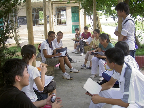7月18日,教育学院清远队面向大湾镇大湾中学、中心小学、小联小学的义教历程正式开始,将于7月29日结束。义教内容按专题划分,分别为综合英语、交际英语、快乐阅读、中外文化、奥运知识、生活常识、语音语调、英语语法、英语写作等。每一专题下又分许多不同主题,如综合英语包括“家庭成员”、“花与茶”、“交通工具”、“职业”等主题,内容丰富多彩,形式灵活多样。