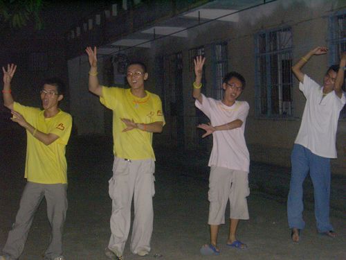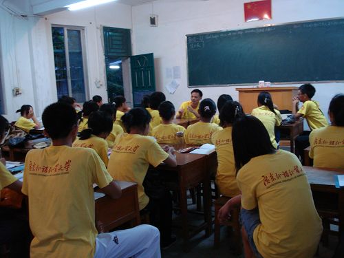 每天晚上队员的主要工作就是备课和开会。宿舍昏黄的灯光下,坐成一排的我们在一台左右摇头的风扇下认真地备课,用心地讨论,完全不顾经常来访的飞蛾、蚊子……例会上,各组各班级工作情况的详细汇报、问题的总结、解决方法的讨论、上课心得的分享等有条不紊地进行着。夜深,人却不静,炽热心灵于昏暗中闪动。