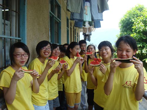 炎热的天气,艰苦的条件和繁重的任务使几个队员相继病倒了,感冒、中暑、发烧、声音嘶哑……其他队员都纷纷送水送药、帮忙打饭、关切问候……面对队员们的悉心照顾,他们眼里闪烁着感动的泪光,而脸上却依然张扬着灿烂的笑脸。