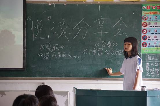 第一期的“悦”读分享会在7月15号开展,种类众多的书籍立刻吸引了同学们的注意。每个人在选取自己喜欢的书籍后立刻聚精会神的阅读了起来。负责管理纪律的老师说:“学生开小差的情况在这一节课少了很多。”各班班主任在讲台上负责组织学生阅读书籍,并组织学生们交换所读的书,以便提高阅读量。