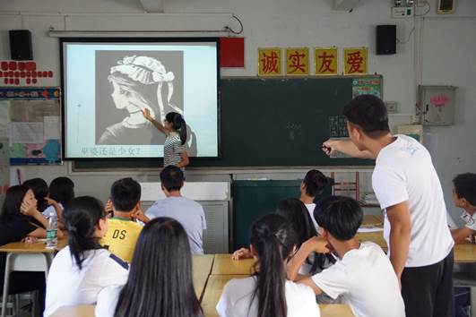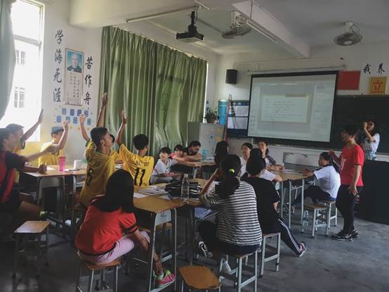 本网讯 7月21日,是广东外语外贸大学英语教育学院“熠熠瑛华”清远大湾三下乡服务队伍到达大湾中学第十天,特色课堂也仍在如火如荼地开展中。