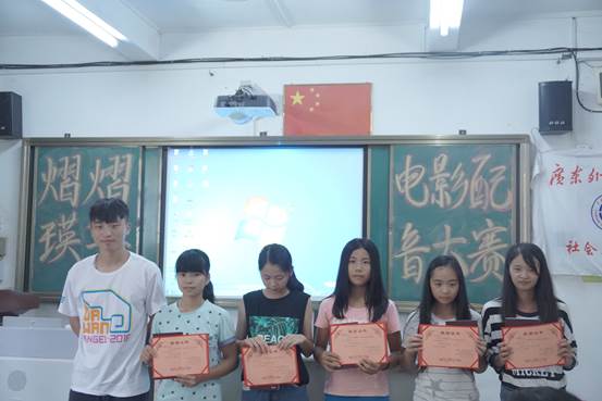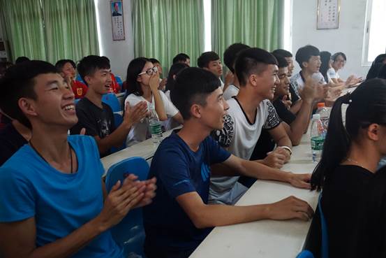本网讯 2016年7月22日下午,“熠熠瑛华”夏令营英语电影配音大赛在清远大湾中学阶梯教室顺利举行。这次比赛是由广东外语外贸大学英语教育学院清远英德大湾中学三下乡服务队举办,目的是活跃大湾中学的学术氛围,激发大湾中学学生对英语的热情,提高学生的英语语言素养,让从学生们展示英语风采。