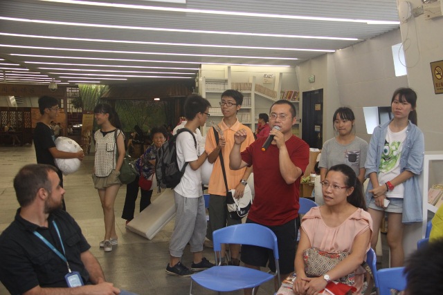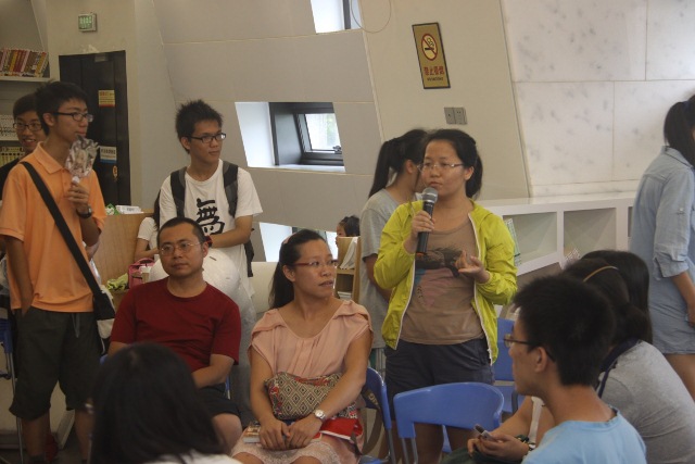 由于下雨的原因,一开始参与者并不是很多,但渐渐地路过阅读体验区的读者也被我们的热烈讨论所吸引,开始有更多的读者加入进来。这些参与者有初中高中的学生也有还在念小学的读者另外也包括一些年纪较大的社会人,但不管是小朋友还是成年人,不管英语口语流利与否,加入到我们分享会的每一位参与者都能很快融入我们英语交流的氛围,学着大胆用英语表达自己的观点。