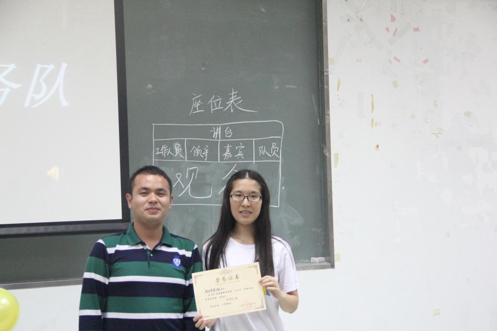 最后,由林泽龙为优秀队伍颁发奖状,由叶芷君为优秀队员颁发奖状。优秀队员代表戴智健上台发表自己的感想:“这次活动确实让我收获了成长。我们不能纯粹把三下乡当成一个完成志愿时数的任务,而是要真心想带给孩子们一些东西,因为他们同时也给了我们最朴实的感动。这个双向给予的活动,让我们大家都有了成长。”