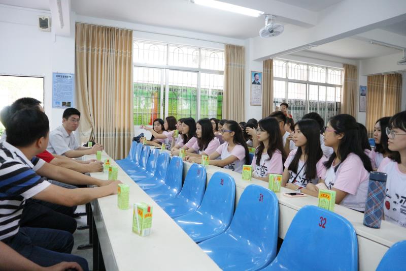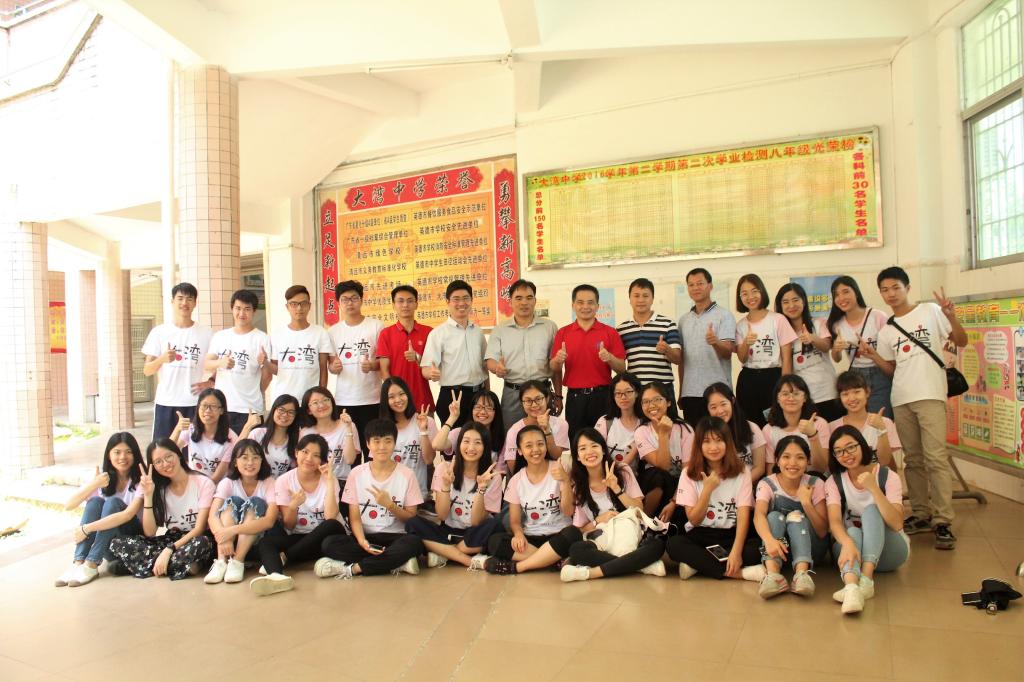 2017年7月16日,英语教育学院党委书记林绍雄、党委副书记徐昶斌和优秀校友何洁铵莅临大湾中学慰问正在辛勤支教的队员们,并受到大湾中学副校长刘国林、万锦灵的热情招待。