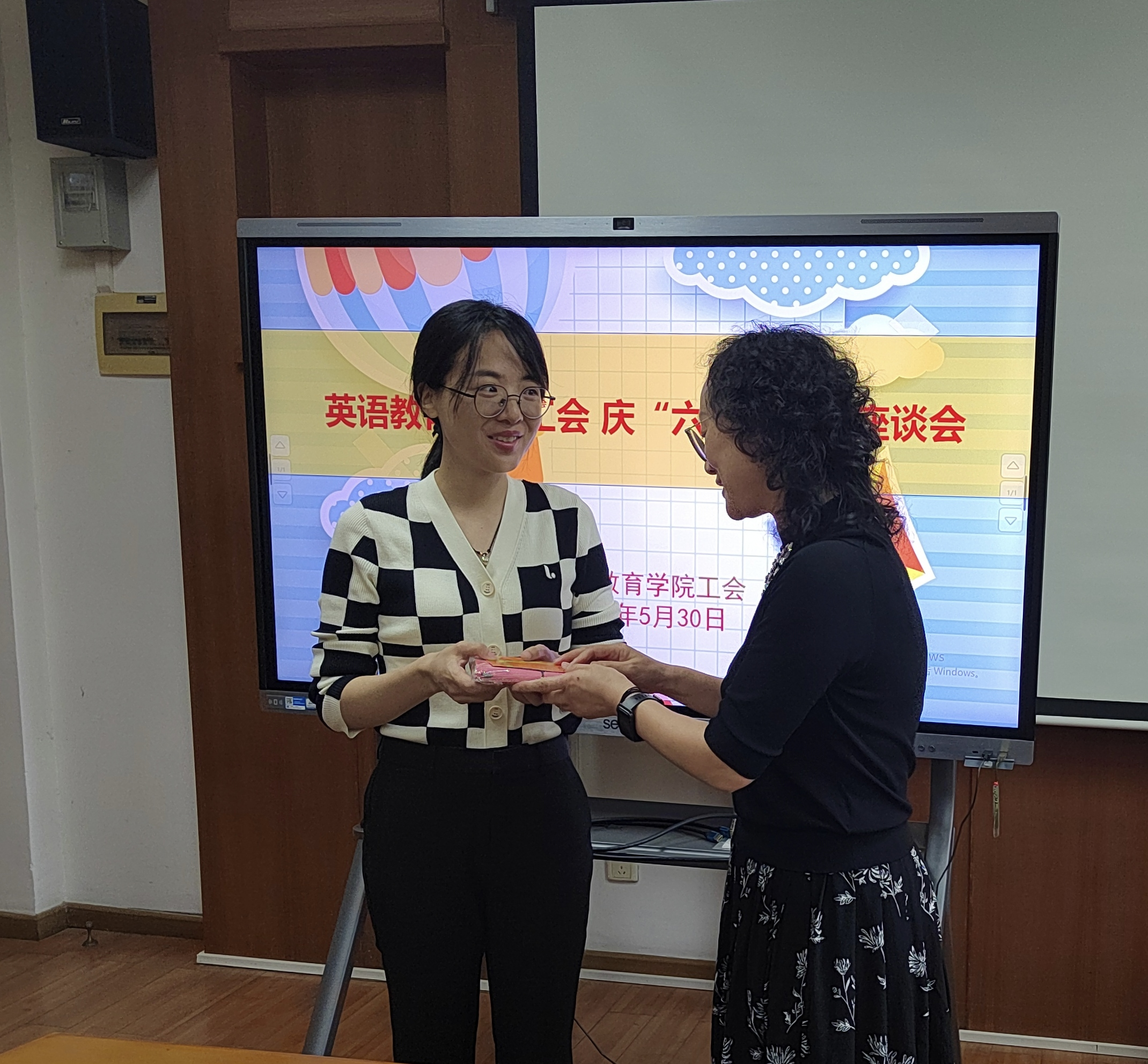 花香四溢、欢声笑语的六月悄然而至,为庆祝“六一”儿童节,关怀教职工生活,5月30日中午,英语教育学院工会组织学院教职工开展亲子座谈会,并向新晋的一胎、二胎妈妈们发送慰问礼品与慰问金,老师们相互交流育儿心得与经验,充满欢天喜地的节日气氛。