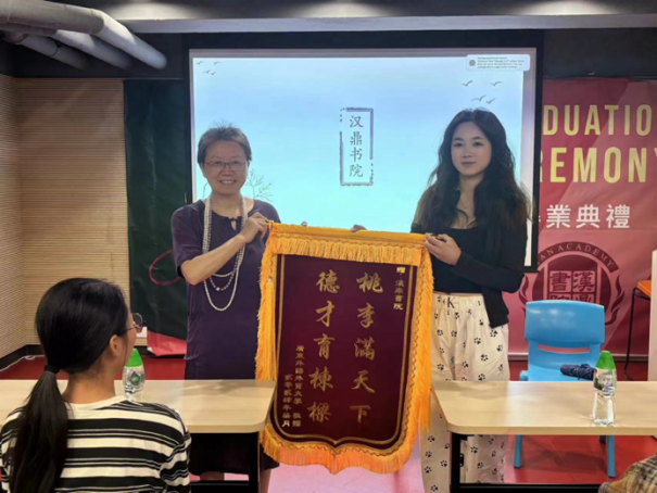 7月14日上午,同学们紧锣密鼓地准备第二天的专案汇报。大家集思广益,精益求精,各个小组都在努力完善自己的项目,不断创新,力求用最佳的形式展现学习成果。下午,同学们来到汉鼎书院参观。汉鼎书院的校监和老师为同学们介绍书院发展的过程,并带大家参观书院,让大家对香港的私立学校有了一定的了解,在丰富深入的交流后,访学团代表向汉鼎书院赠送了锦旗。