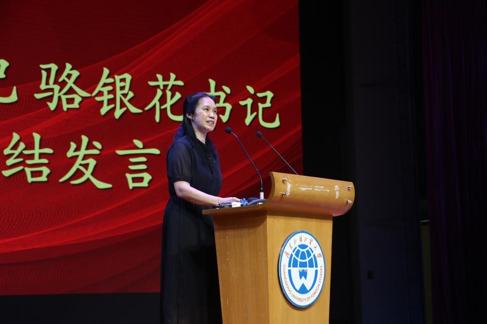 为深入贯彻落实立德树人根本任务,强化思想政治教育根基,为2024级新生“扣好大学第一粒扣子”,9月4日,英语教育学院党委书记骆银花以“展青年风貌,铸时代辉煌”为题,于大学城校区学术报告厅为学院2024级全体新生讲授“书记思政第一课”。