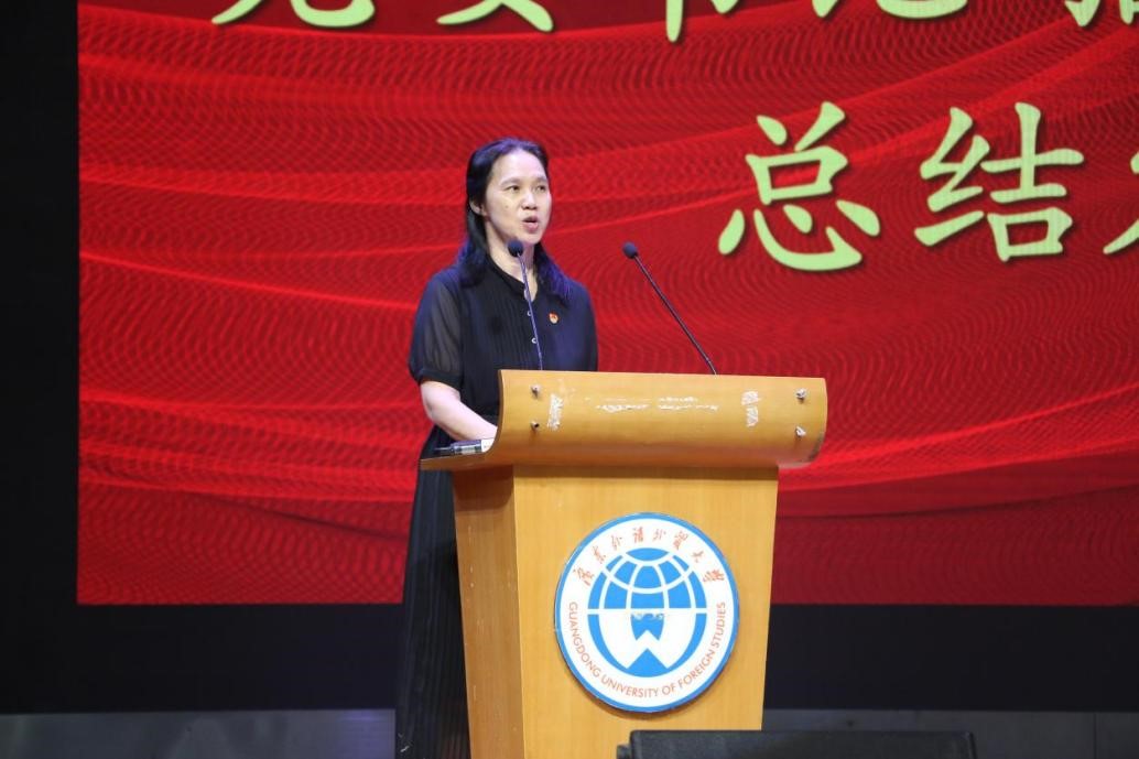 教师代表秦丽莉老师用“气宇轩昂”、“怀瑾握瑜”和“兰芝常生”三个关键词,向新生介绍了广外和英教学院的优势,并鼓励新生保持初心,努力学习,为未来打下坚实的基础。