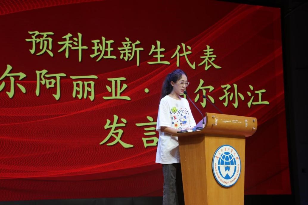 预科班新生代表努尔阿丽亚·图尔孙江发言