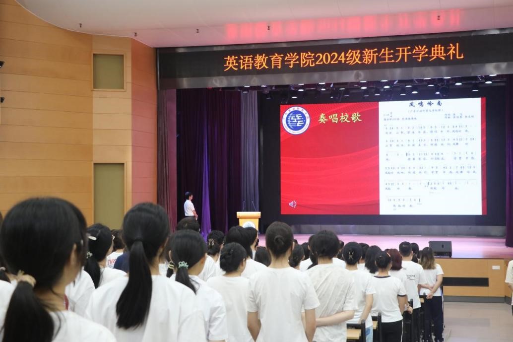 英语教育学院2024级新生开学典礼在全体师生齐唱校歌的激昂旋律中圆满落幕。新学期序幕正式拉开,愿英语教育学院的新生们不忘初心,共绘青春梦想新篇章。