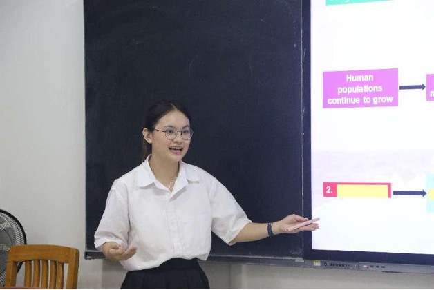 选手谭雯希英语口语生动流利,她通过新闻时事活跃课堂气氛,调动学生学习的积极性。同时,她使用架构清晰的思维导图对文章结构进行阐述,带领学生们认识到拯救濒危动物的必要性,并针对这个问题提出了合理有效的解决方案。
