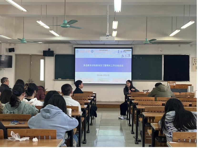 12月31日上午,英语教育学院2024年教育实习总结大会在南校教学楼F508举行。英语教育学院副院长李惠胤、教育硕士教学中心主任康叶钦、研究生英语教学部主任魏海苓、全体硕士生导师、研究生工作人员以及2023级和2024级研究生参加了会议,会议由康叶钦主持,主管副院长李惠胤教授致辞。