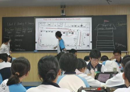 本次见习以“走进真实课堂,学习优质教学”为主题。实习生们首先深入高二(2)班课堂,观摩了一节英语“Reading and Thinking”课。授课教师以基孔肯雅热、新冠病毒等贴近学生生活的公共 卫生话题为切入点,自然过渡到阅读文本中的霍乱主题,巧妙搭建起知识与生活的桥梁。课堂围绕两条主线展开:一是梳理科学家约翰 ·斯诺研究霍乱的七步科学流程,二是提炼过程中体现的科研精神与人物品质。教学中,教师亮点突出:一方面采用“图文结合”策略,引导学生以图解文,降低文本理解难度;另一方面实施“分层提问”,对表达能力较强的学生,鼓励其深入拓展;对表达稍弱的学生,通过逐步提供线索,帮助其理清思路、大胆发言,确保不同层次学生均能参与课堂、展现自我。