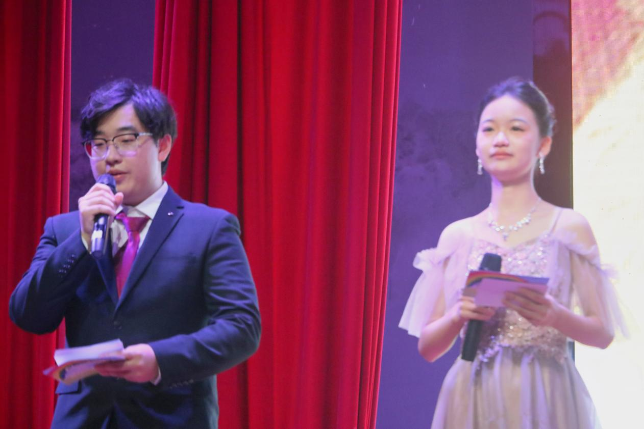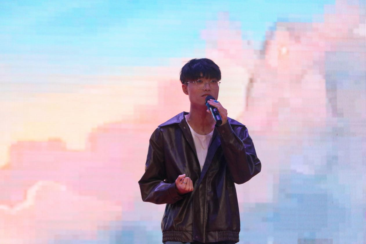 选手表演结束后,“惊喜嘉宾”的精彩演唱将现场的气氛推向高潮。英语教育学院2024年“Iridescent Bubbles”秋之声歌唱比赛决赛特等奖选手沈文杰受邀返场,倾情献唱《修炼爱情》。其深情而富有张力的演绎直击人心,令全场观众沉醉其中。此环节不仅为大赛增添了独特的艺术光彩,更彰显了学院文化中浓厚的传承与温情。