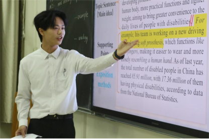 经过初赛的激烈角逐,最终有32名选手脱颖而出进入复赛。各位选手从所给的三篇文章中自选一篇进行展示,包括“Nurture dedication to science”、“Fully implementing the strategy of invigorating China through science and education”、“Stay committed to innovation-driven development”。参赛选手需运用富有感染力的语言以及现代化的教学手段,进行10分钟的读写课展示。选手们教态自信得体、教学思路清晰、板书简洁、语言表达流畅,充分展现了英教学子扎实的专业素养和昂扬的精神风貌。